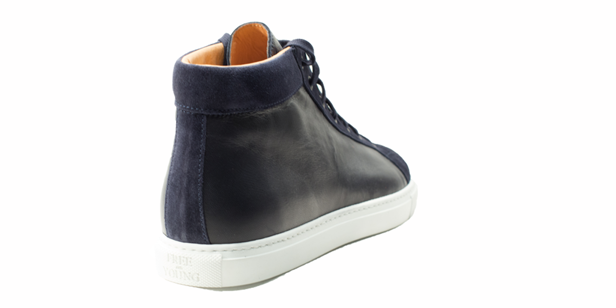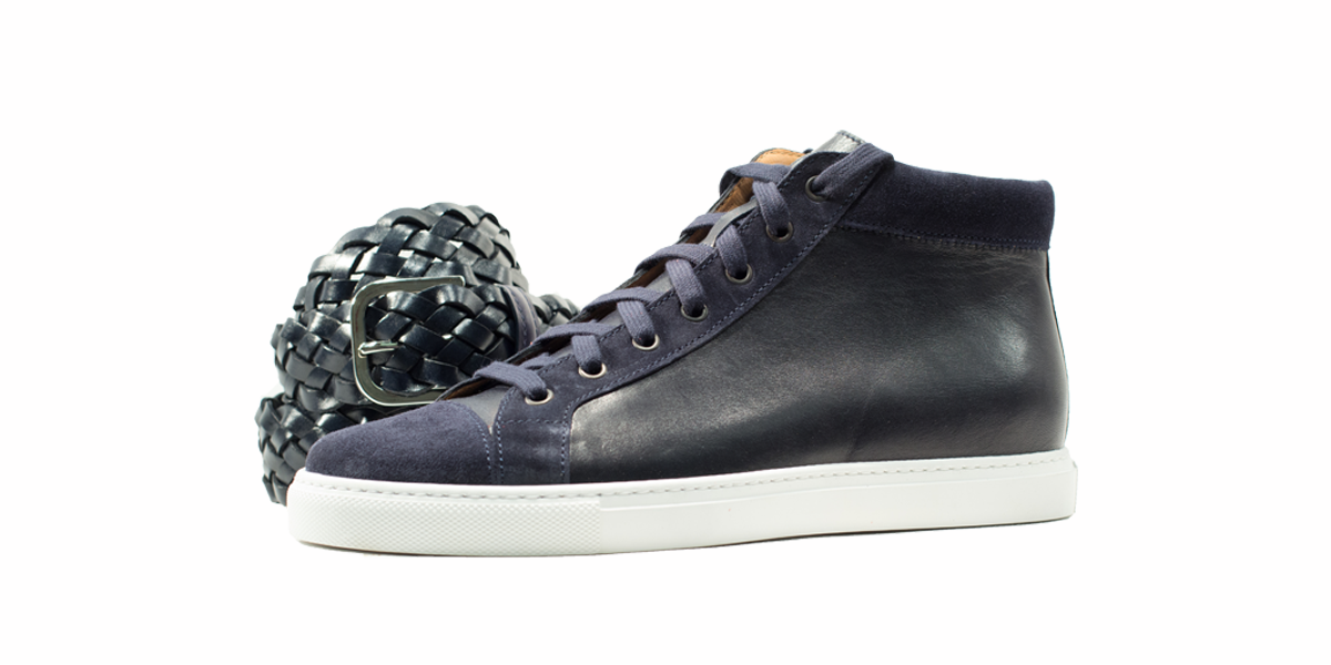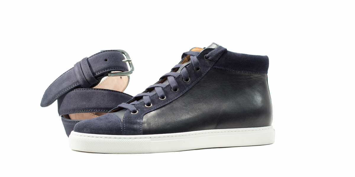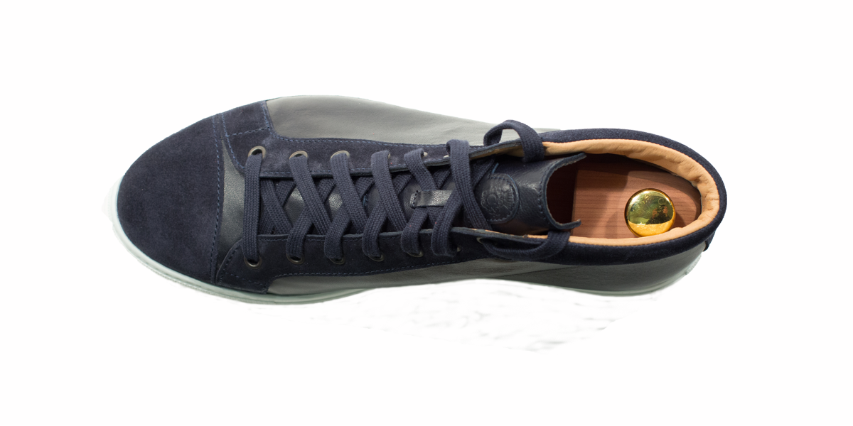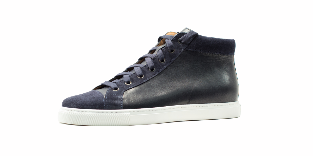 Cardinale's Exclusive sneakers Collection. Material: full grain calfskin and crust. Colour: blue. Outsole: ivory rubber. Use: leisure time. These casual yet elegant sneakers are perfect with a pair of jeans for an elegant casual look. Dress them up with a suit for a business casual style. Available in a large range of colours and materials. Made in Italy from premium materials, these sneakers are very comfortable and finished with elegant details.