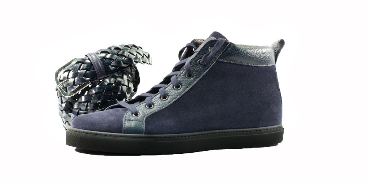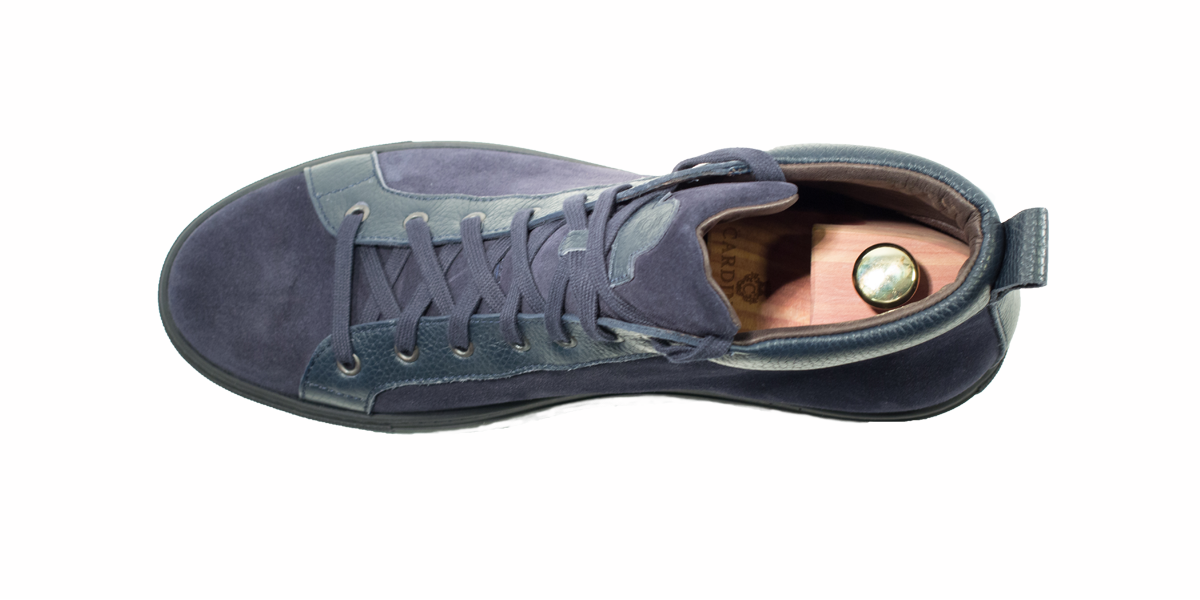 Cardinale's Exclusive sneakers Collection. Material: crust and grained calfskin. Colour: blue. Outsole: black rubber. Use: leisure time. These casual yet elegant sneakers are perfect with a pair of jeans for an elegant casual look. Dress them up with a suit for a business casual style. Available in a large range of colours and materials. Made in Italy from premium materials, these sneakers are very comfortable and finished with elegant details.