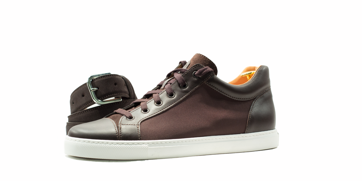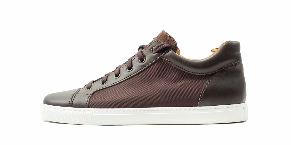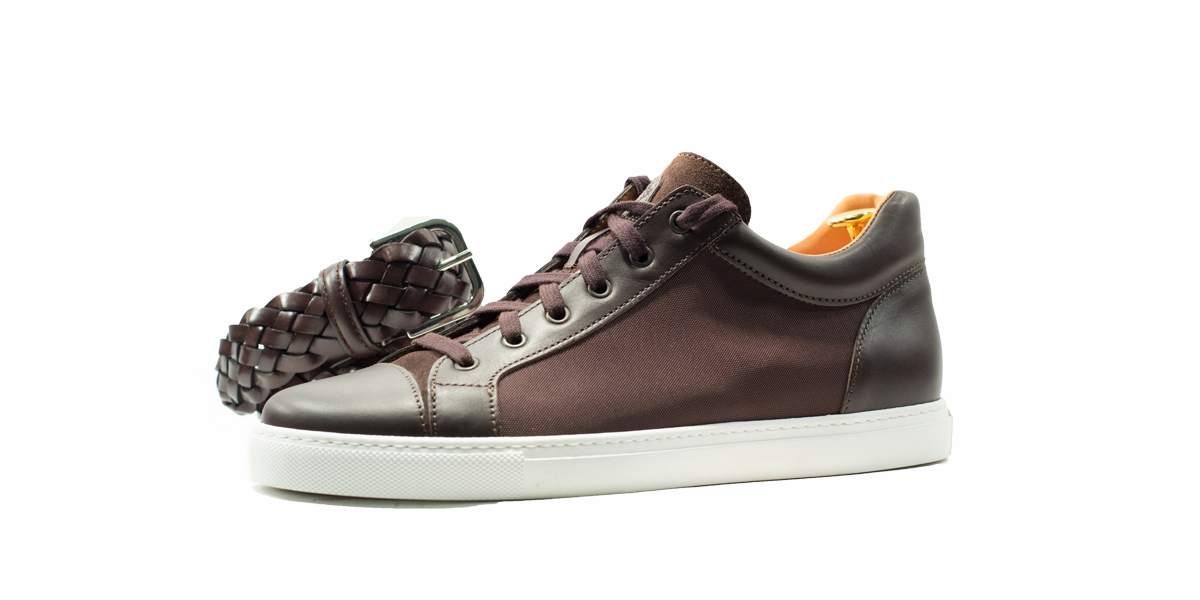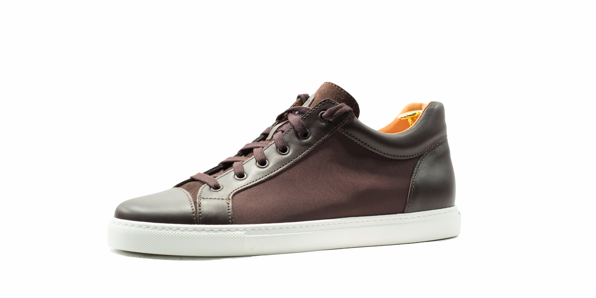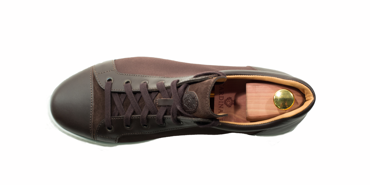Cardinale's Exclusive sneakers Collection. Material: canvas and full grain calfskin. Colour: dark brown. Outsole: ivory rubber. Use: leisure time. These casual yet elegant sneakers are perfect with a pair of jeans for an elegant casual look. Dress them up with a suit for a business casual style. Available in a large range of colours and materials. Made in Italy from premium materials, these sneakers are very comfortable and finished with elegant details.