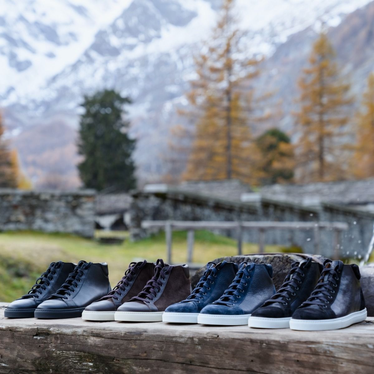 | After gluing the rubber box sole and pressing it to the upper shoe and midsole, it is further fastened using the Blake machine, which stitches the bottom of the shoe. The shoe manufacturing process consists of more than 35 handmade steps which include cutting, skiving, assembling, gluing, finishing, etc. The collection is entirely made in Italy. |