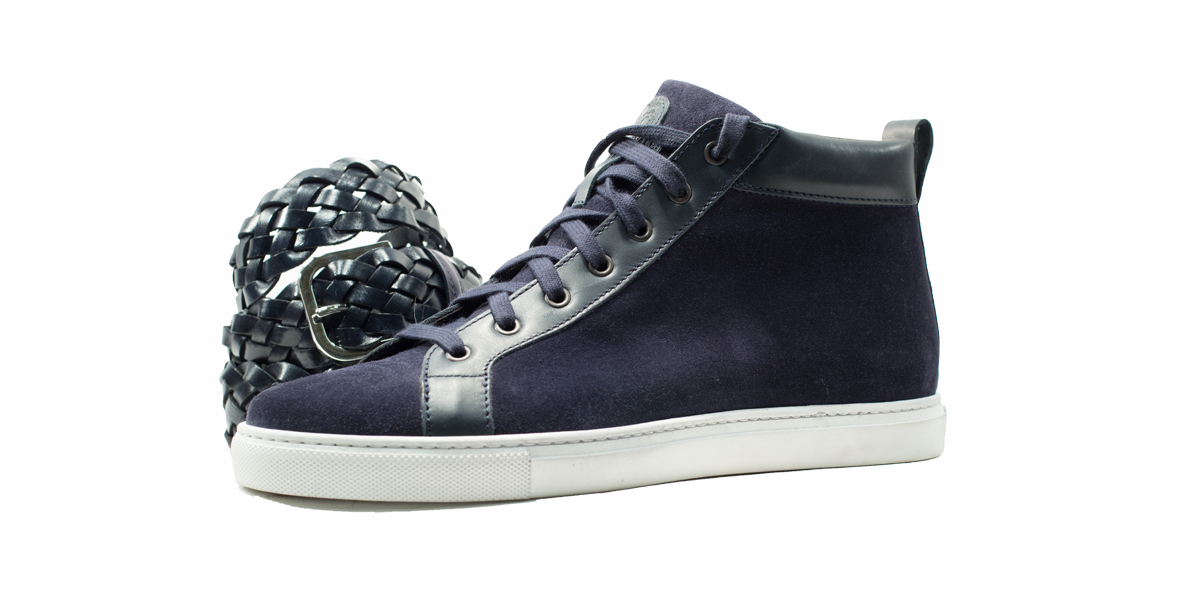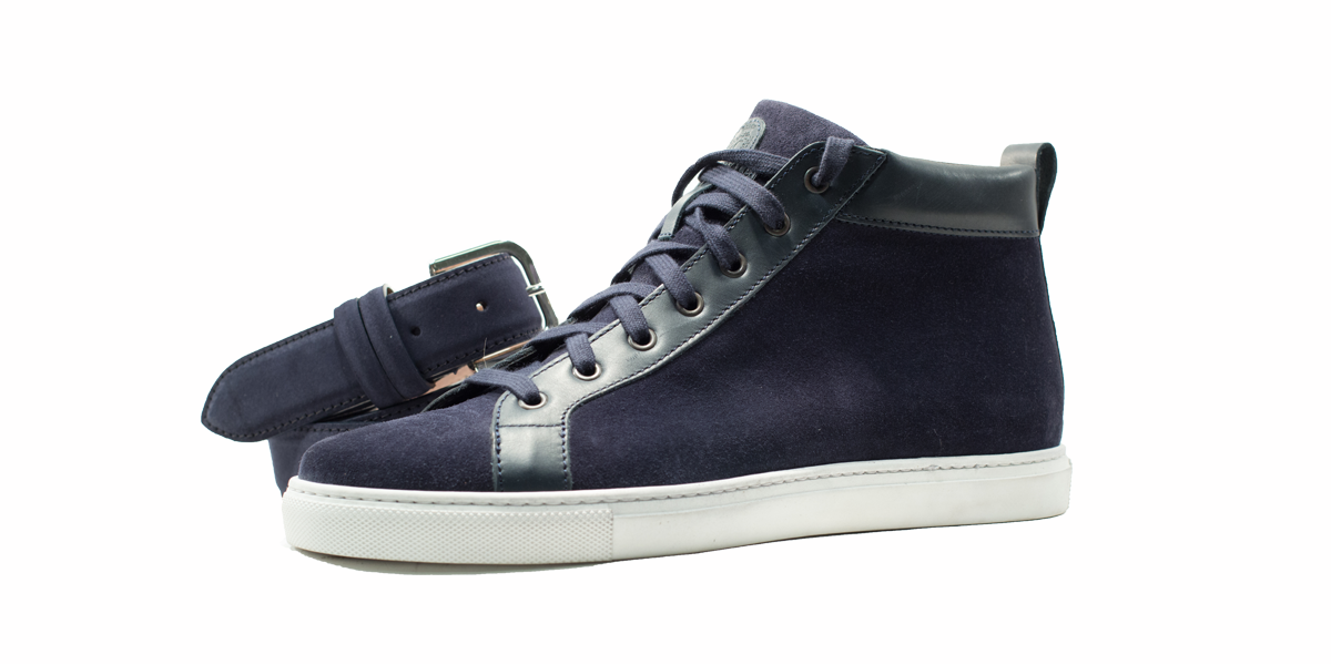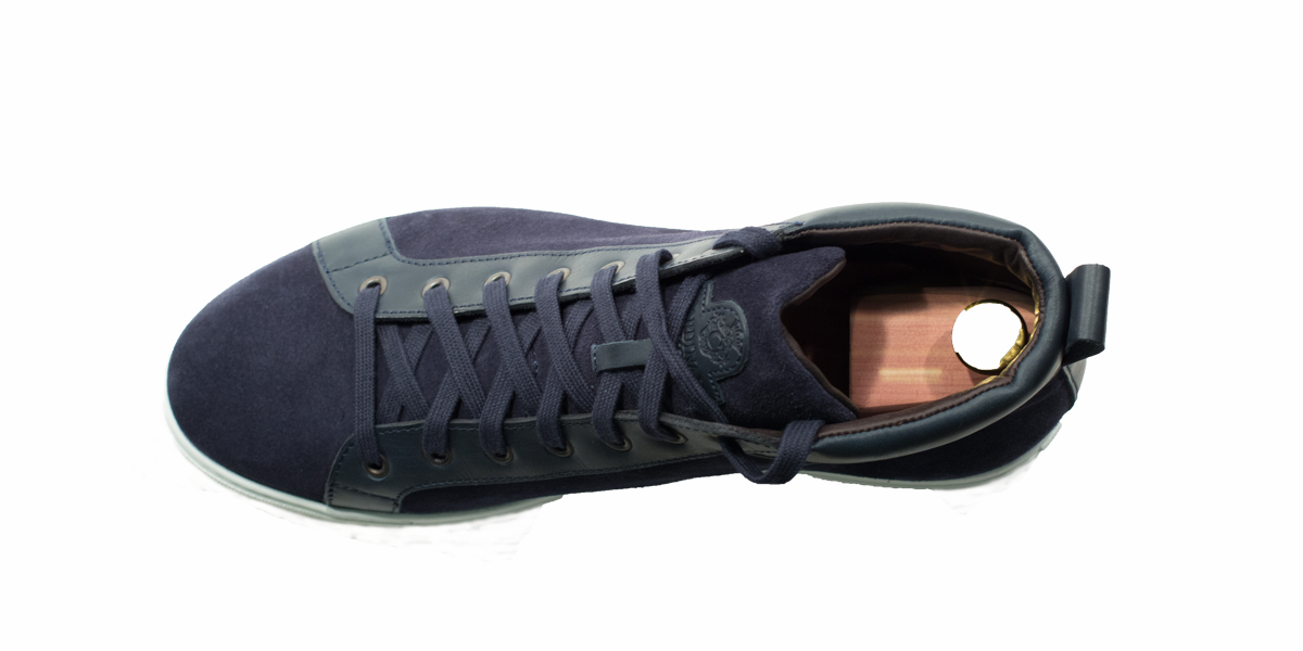 Cardinale's Exclusive sneakers Collection. Material: crust and full grain calfskin. Colour: blue. Outsole: ivory rubber. Use: leisure time. These casual yet elegant sneakers are perfect with a pair of jeans for an elegant casual look. Dress them up with a suit for a business casual style. Available in a large range of colours and materials. Made in Italy from premium materials, these sneakers are very comfortable and finished with elegant details.