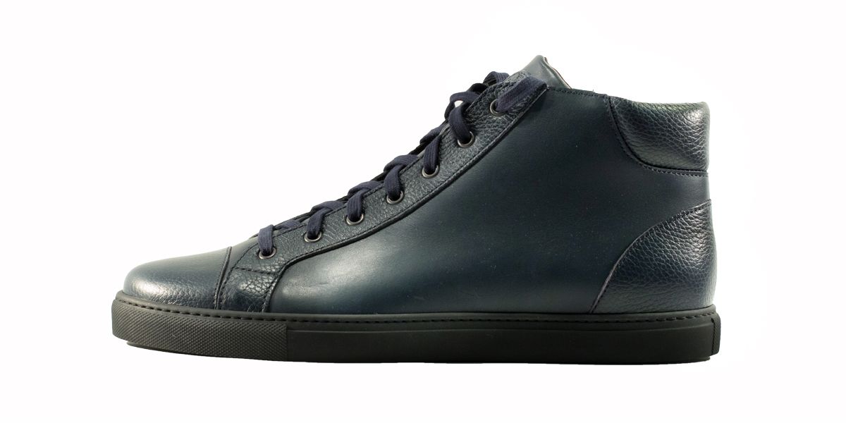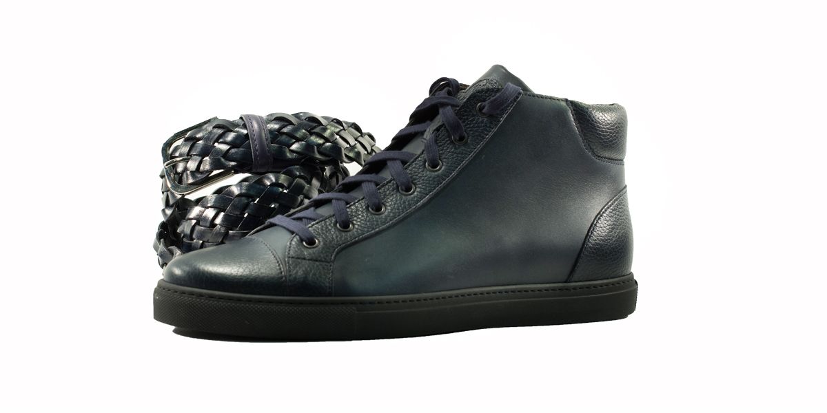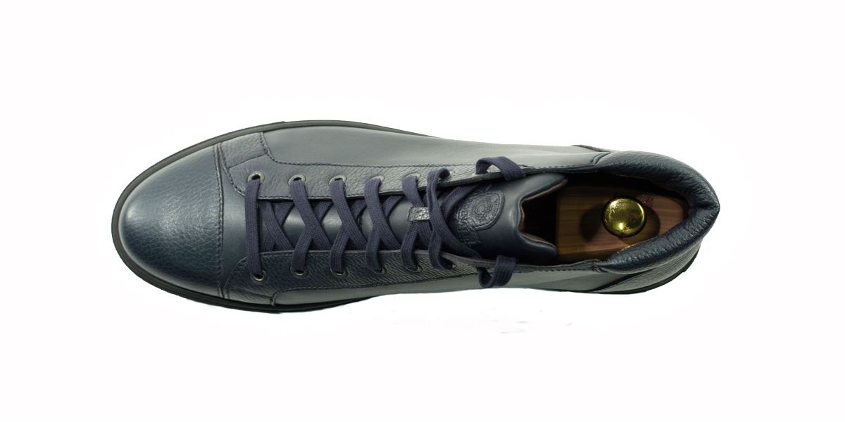 Cardinale's Exclusive sneakers Collection. Material: full grain calfskin and grained calfskin. Colour: blue. Outsole: black rubber. Use: leisure time. These casual yet elegant sneakers are perfect with a pair of jeans for an elegant casual look. Dress them up with a suit for a business casual style. Available in a large range of colours and materials. Made in Italy from premium materials, these sneakers are very comfortable and finished with elegant details.