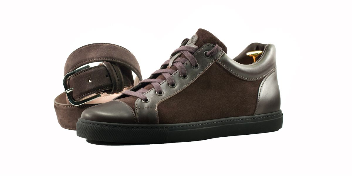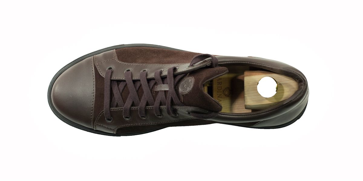 Cardinale's Exclusive sneakers Collection. Material: full grain calfskin and crust. Colour: dark brown. Outsole: black rubber. Use: leisure time. These casual yet elegant sneakers are perfect with a pair of jeans for an elegant casual look. Dress them up with a suit for a business casual style. Available in a large range of colours and materials. Made in Italy from premium materials, these sneakers are very comfortable and finished with elegant details.