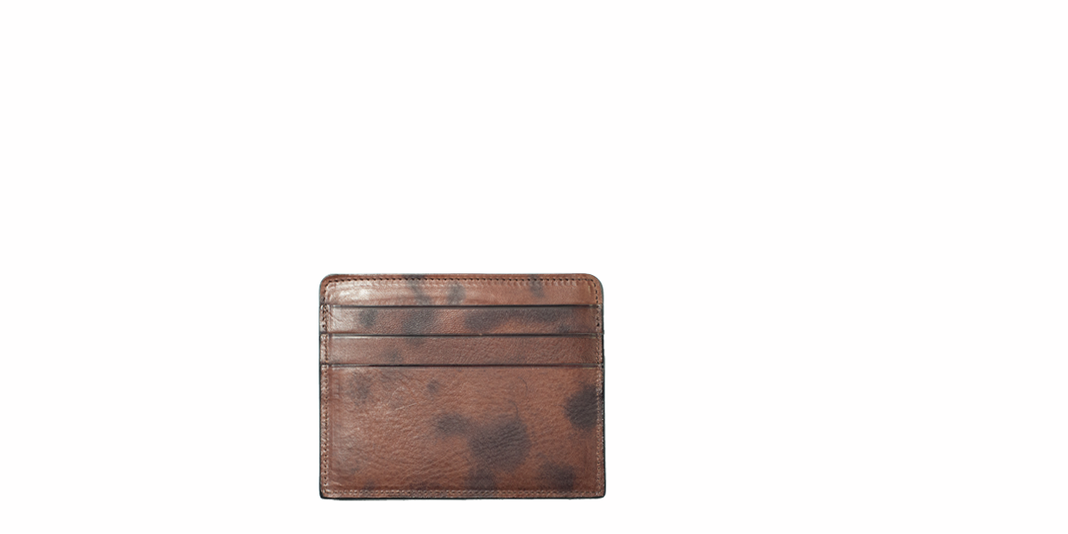| Machine stitched credit card holder with hand made finish. The manufacturing process consists of more than 30 handmade steps which include skimming, folding, wax coating. The collection is entirely made in Italy. |