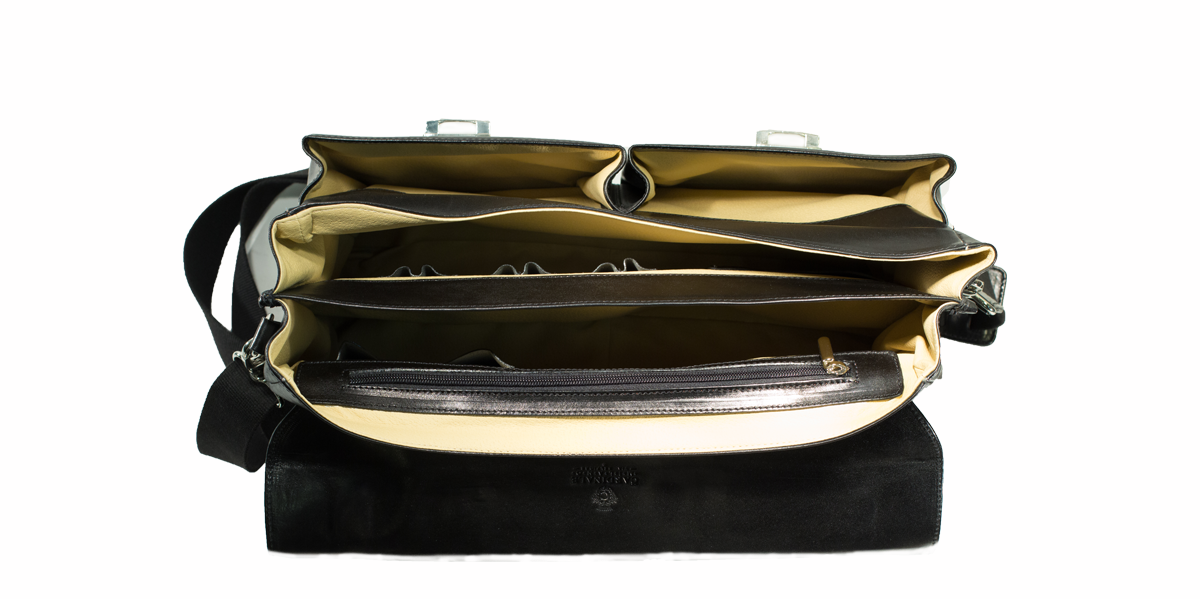 | Machine stitched business bag with hand made finish. The manufacturing process consists of more than 15 handmade steps which include skimming, finishing, sewing, polishing, dye and waxing of the edges. The collection is entirely made in Italy. |