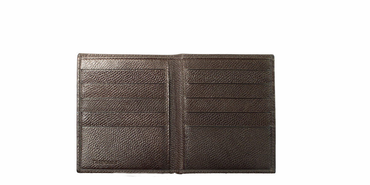Cardinale exclusive Milan collection wallet. 10 card slots, 1 note compartment, 2 extra pockets. Material: grained calfskin. Colour: dark brown. Dimensions: 12,5x 10,5. Made in Italy. It is made of the same leather used for our shoes. An elegant men's wallet that has room for a lot of cards and documents in credid card size.
