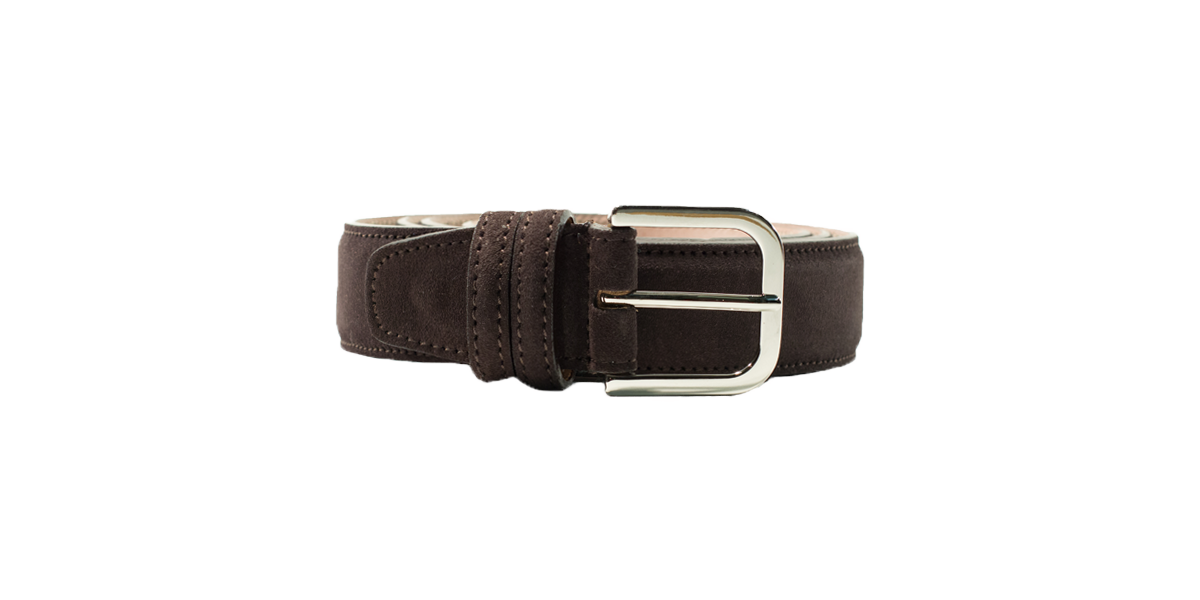 A Cardinale's exclusive leather belt. It's made of reversed leather and it's entirely hand-sewn. Silver rounded buckle. Colour: dark brown. Lining colour: beige. Height: 33 mm. Handcrafted from the same leather used for our shoes. It is ideal both for leisure and work.