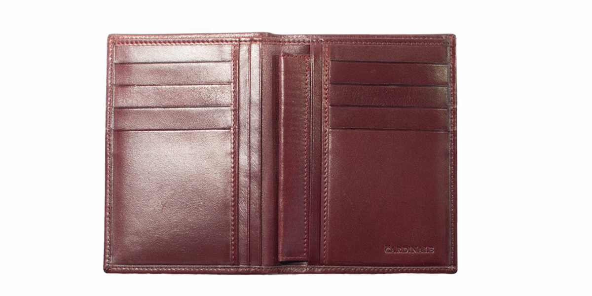 As part of the Cardinale Exclusive Paris Collection, this wallet offers 8 card slots, 1 note compartment, 5 extra pockets, 1 document compartment. Embossed Cardinale logo on the front. Material: full-grain calfskin. Colour: bordeaux. Dimensions: 9 x 12,8. Made in Italy. Handcrafted from the same leather used for our shoes. A well-organized wallet ideal for paper documents.