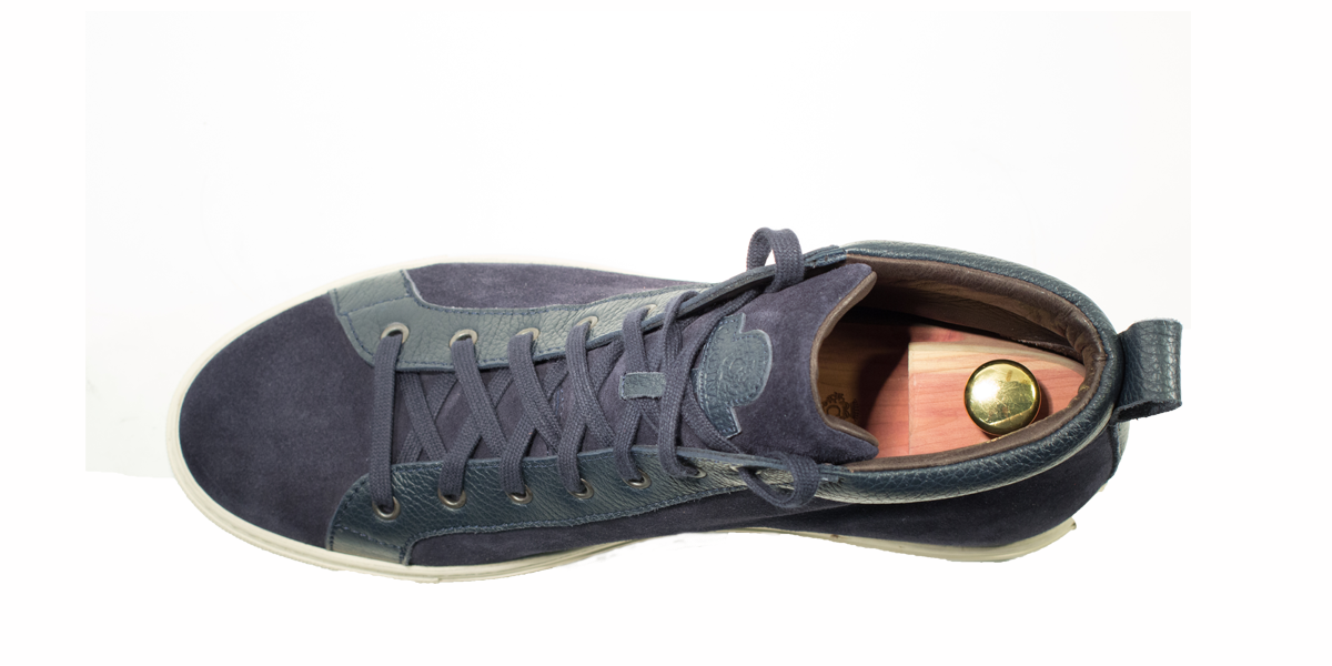 Cardinale's Exclusive sneakers Collection. Material: crust and grained calfskin. Colour: blue. Outsole: cream rubber. Use: leisure time. These casual yet elegant sneakers are perfect with a pair of jeans for an elegant casual look. Dress them up with a suit for a business casual style. Available in a large range of colours and materials. Made in Italy from premium materials, these sneakers are very comfortable and finished with elegant details.
