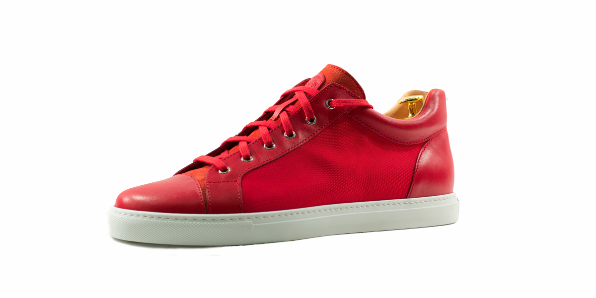 Cardinale's Exclusive sneakers Collection. Material: canvas and full grain calfskin. Colour: red. Outsole: ivory rubber. Use: leisure time. These casual yet elegant sneakers are perfect with a pair of jeans for an elegant casual look. Dress them up with a suit for a business casual style. Available in a large range of colours and materials. Made in Italy from premium materials, these sneakers are very comfortable and finished with elegant details.