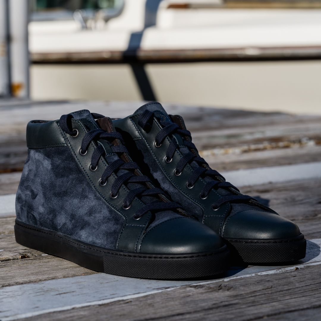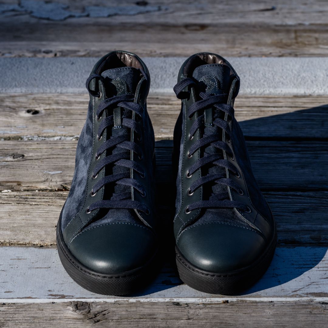 Cardinale's Exclusive sneakers Collection. Material: crust and full grain calfskin. Colour: blue. Outsole: black rubber. Use: leisure time. These casual yet elegant sneakers are perfect with a pair of jeans for an elegant casual look. Dress them up with a suit for a business casual style. Available in a large range of colours and materials. Made in Italy from premium materials, these sneakers are very comfortable and finished with elegant details.
