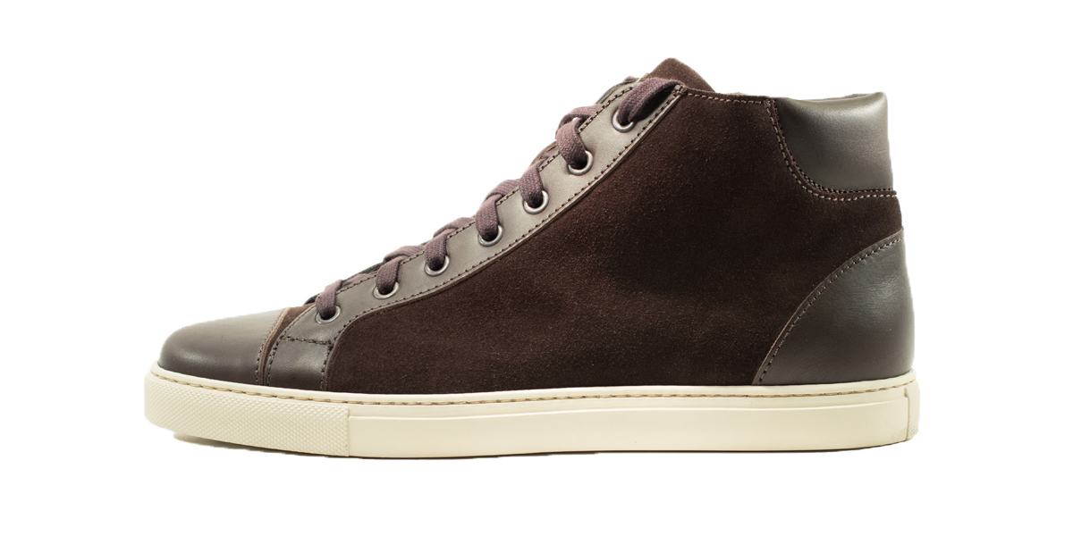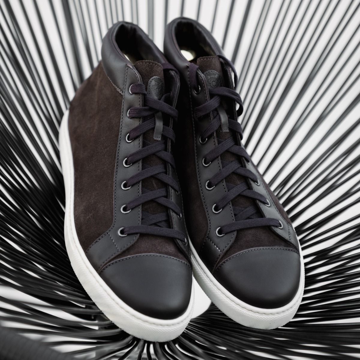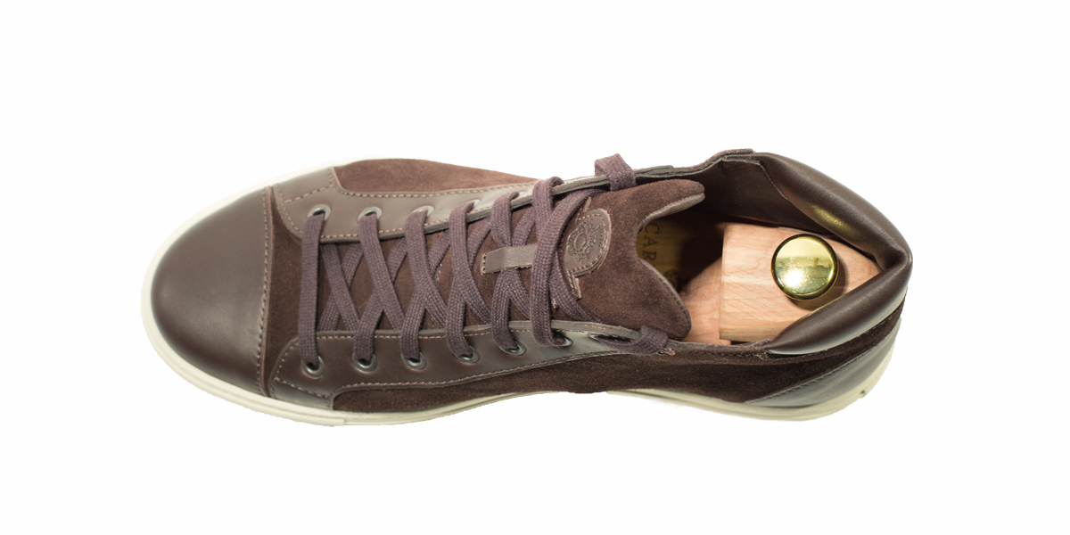 Cardinale's Exclusive sneakers Collection. Material: full grain calfskin and crust. Colour: dark brown. Outsole: cream rubber. Use: leisure time. These casual yet elegant sneakers are perfect with a pair of jeans for an elegant casual look. Dress them up with a suit for a business casual style. Available in a large range of colours and materials. Made in Italy from premium materials, these sneakers are very comfortable and finished with elegant details.