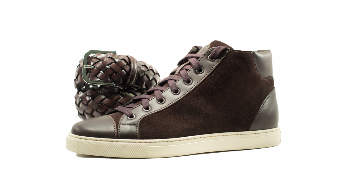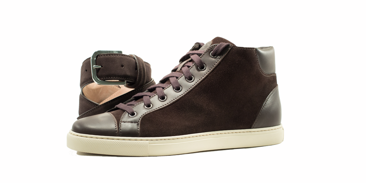 After gluing the rubber box sole and pressing it to the upper shoe and midsole, it is further fastened using the Blake machine, which stitches the bottom of the shoe. The shoe manufacturing process consists of more than 35 handmade steps which include cutting, skiving, assembling, gluing, finishing, etc. The collection is entirely made in Italy.