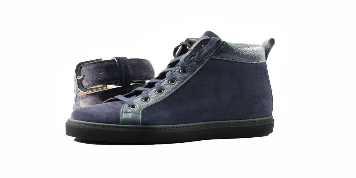 Cardinale's Exclusive sneakers Collection. Material: crust and grained calfskin. Colour: blue. Outsole: black rubber. Use: leisure time. These casual yet elegant sneakers are perfect with a pair of jeans for an elegant casual look. Dress them up with a suit for a business casual style. Available in a large range of colours and materials. Made in Italy from premium materials, these sneakers are very comfortable and finished with elegant details.