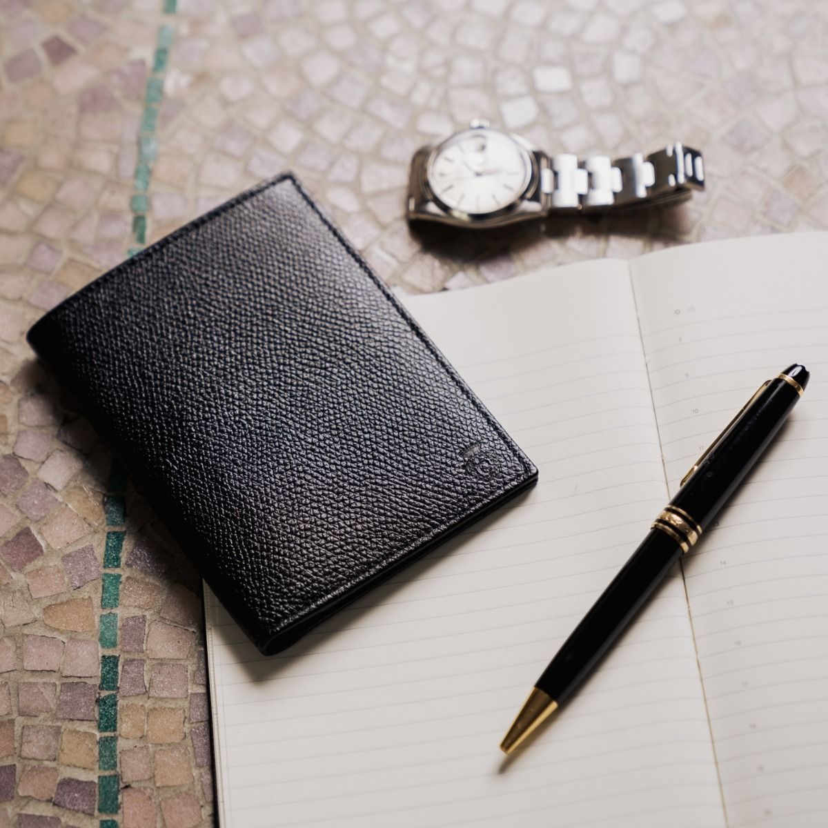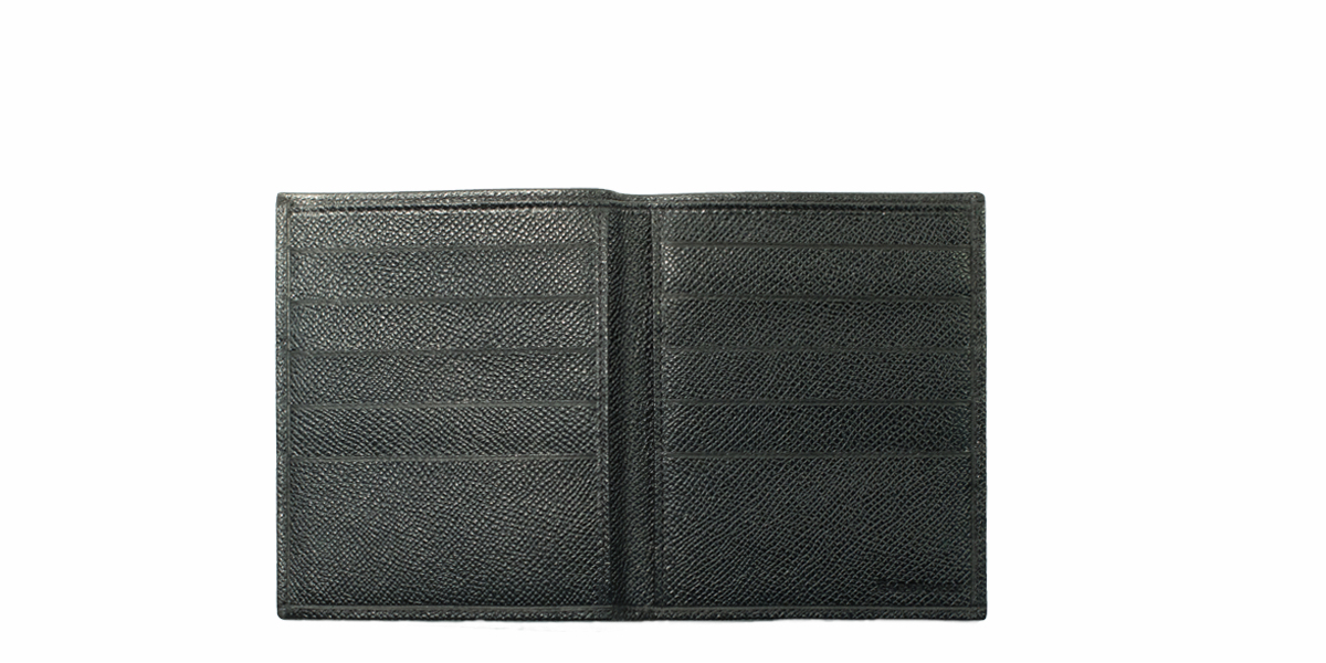 Cardinale exclusive Milan collection wallet. 10 card slots, 1 note compartment, 2 extra pockets. Material: grained calfskin. Colour: black. Dimensions: 12,5x 10,5. Made in Italy. It is made of the same leather used for our shoes. An elegant men's wallet that has room for a lot of cards and documents in credid card size.