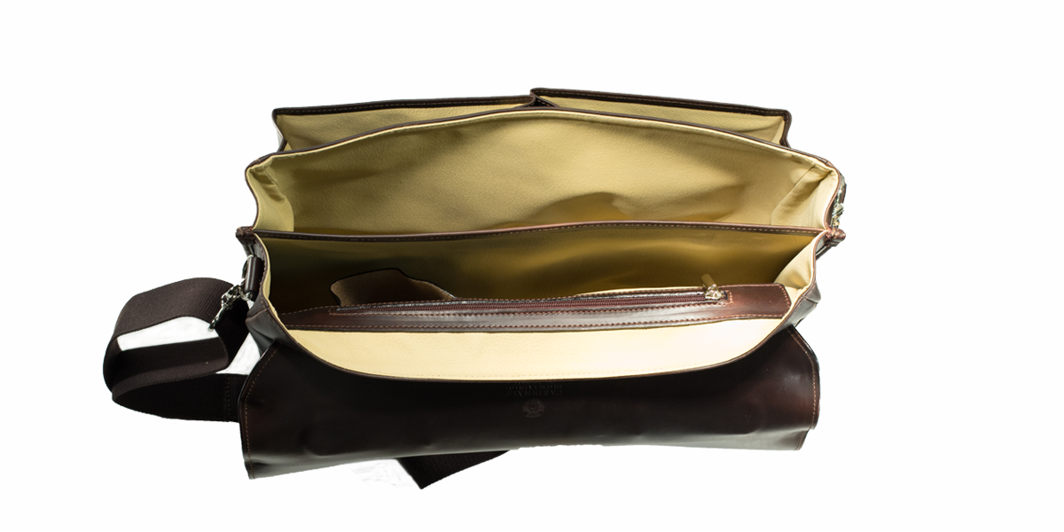 | Machine stitched business bag with hand made finish. The manufacturing process consists of more than 15 handmade steps which include skimming, finishing, sewing, polishing, dye and waxing of the edges. The collection is entirely made in Italy. |