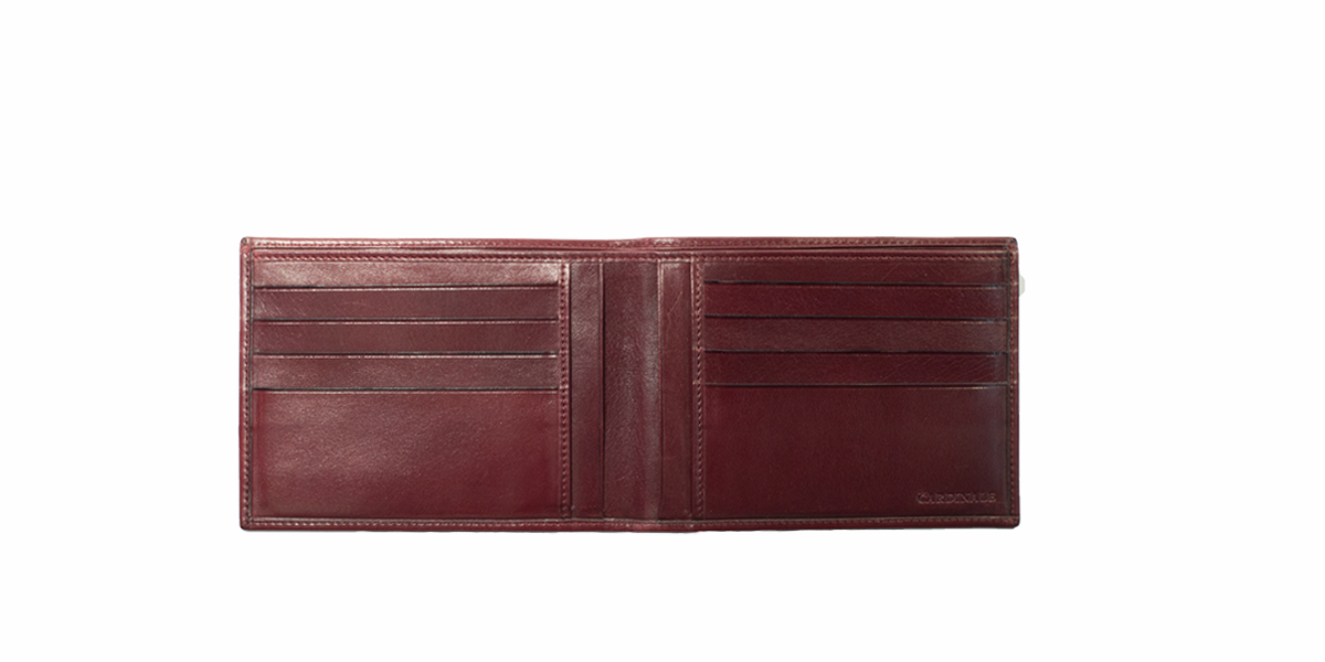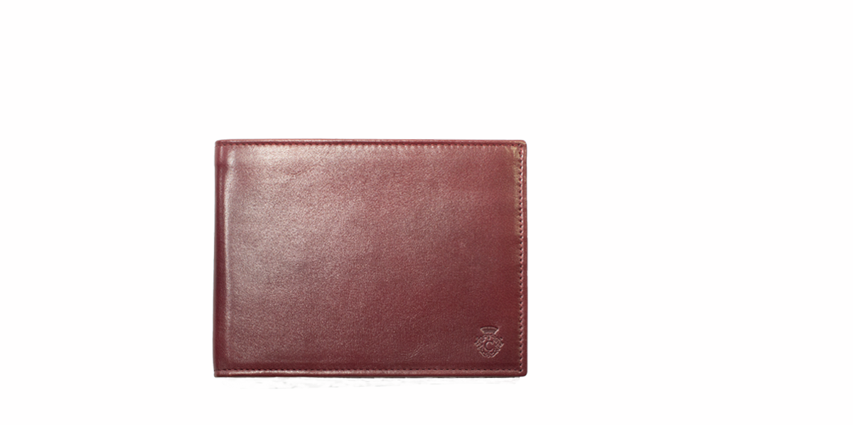 As part of the Cardinale Exclusive Royal collection, this wallet offers 8 card slots, 2 full-length note compartments, 4 extra pockets. Material: full grain calfskin. Colour: bordeaux. Dimensions: 12,5x 9,5. Made in Italy. It is made of the same leather used for our shoes. A great classic men's wallet.