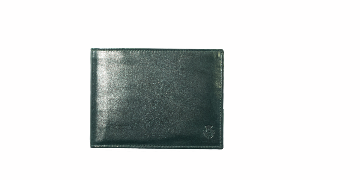 As part of the Cardinale Exclusive Royal collection, this wallet offers 8 card slots, 2 full-length note compartments, 4 extra pockets. Material: full grain calfskin. Colour: green. Dimensions: 12,5x 9,5. Made in Italy. It is made of the same leather used for our shoes. A great classic men's wallet.