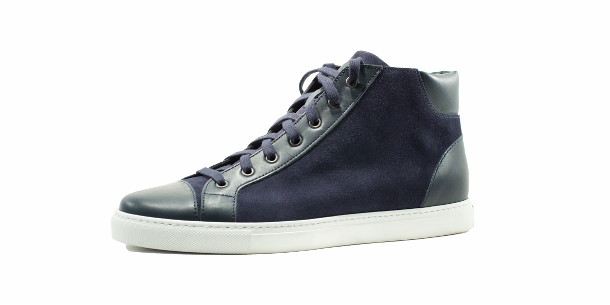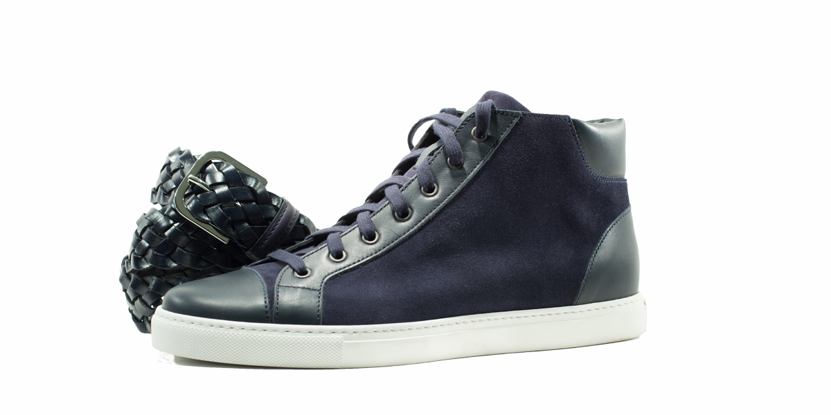 Sneakers esclusiva di Cardinale in camoscio con inserti in pelle. Pellame: crosta e Vitello pieno fiore. Colore: blu. Fondo: gomma nero. Utilizzo: tempo libero. La collezione nuova di sneakers di Cardinale vuole soddisfare un cliente che ama essere sportivo ma al tempo ad tesso formale. Questa collezione infatti può essere abbinata ad un jeans o ad uno spezzato il venerdì , ormai chiamato casual-friday. E' incredibilmente confortevole e ed proposta in numerosissime varianti di colori, pellami e fondi. Curatissima nei dettagli e nelle scelte dei materiali utilizzati, con una produzione esclusivamente made in Italy.