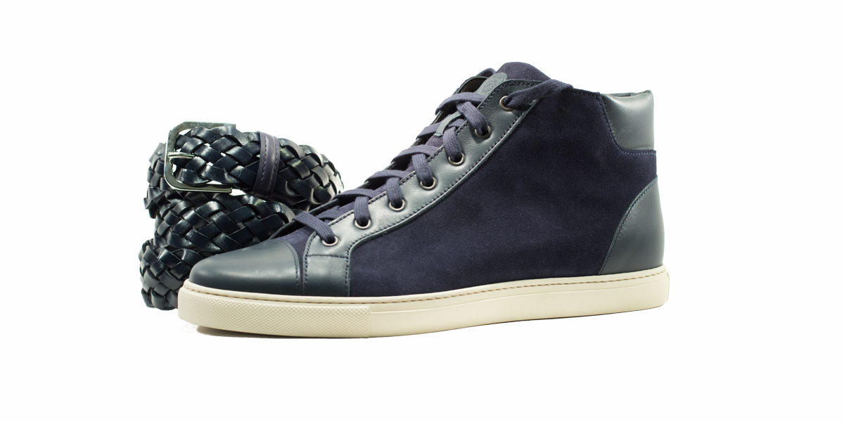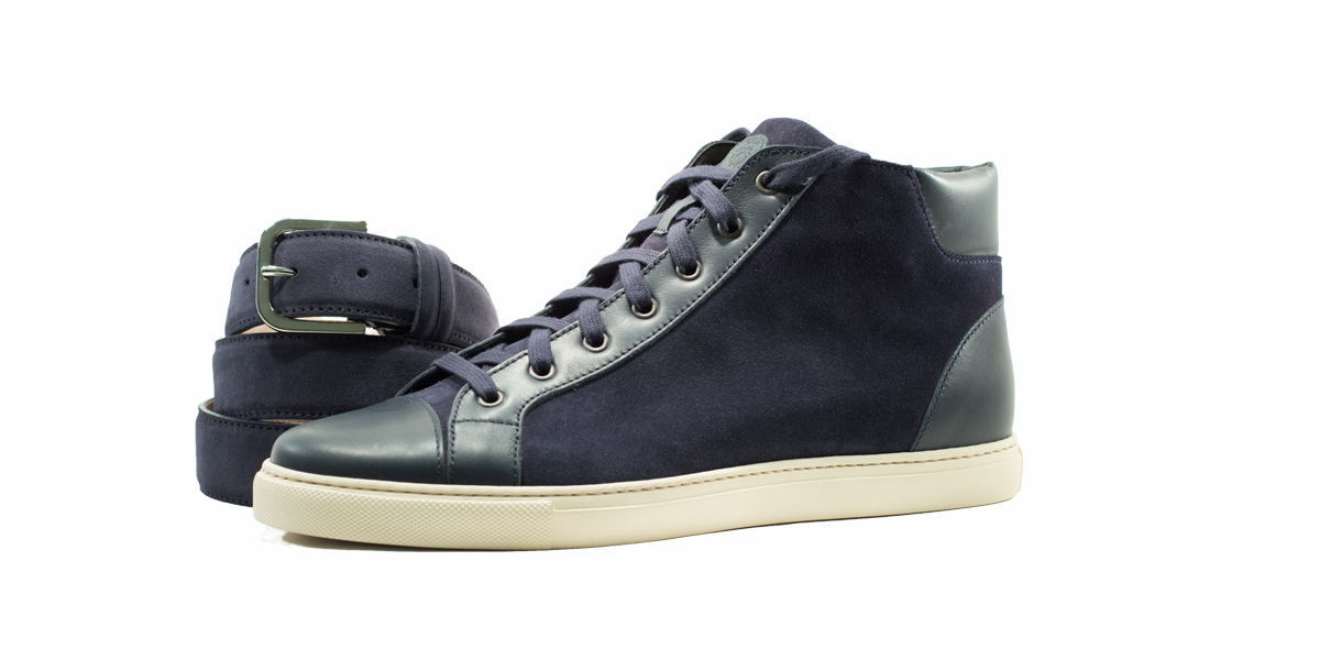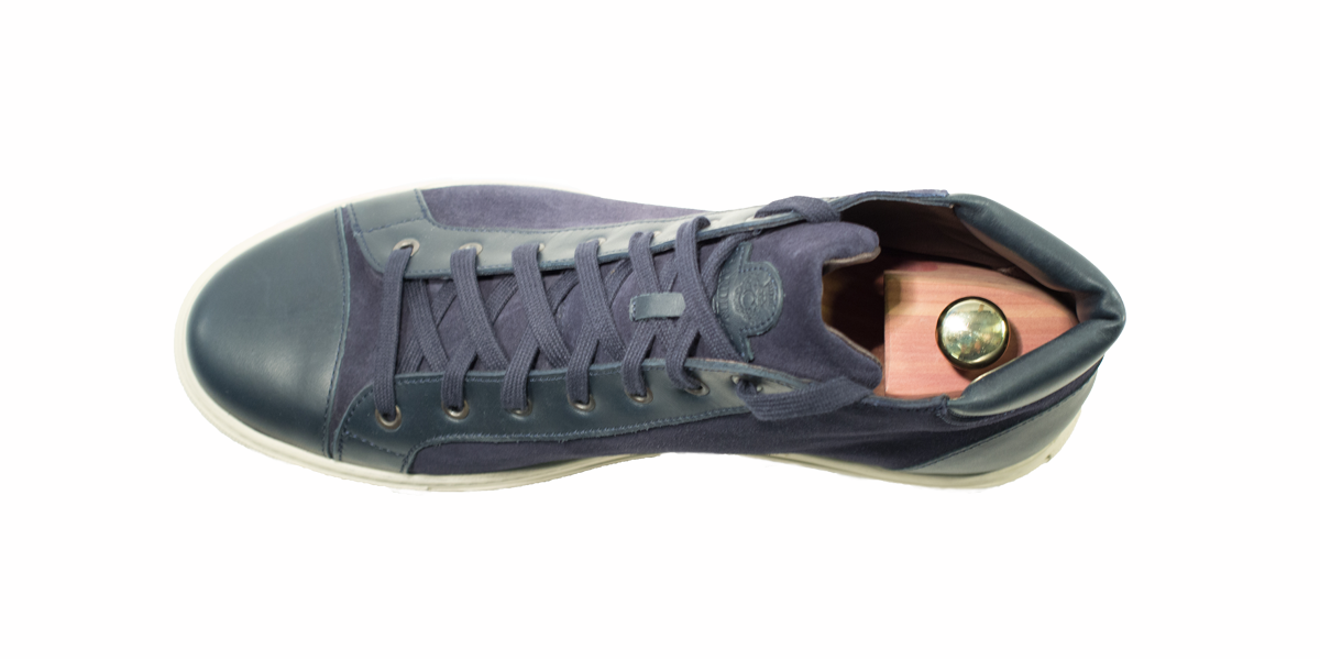 Sneakers esclusiva di Cardinale in camoscio blu con inserti in pelle blu, esclusiva di Cardinale. Pellame: crosta e vitello pieno fiore. Colore: blu. Fondo: gomma cremino. Utilizzo: tempo libero. Peso: all-seasons. La collezione nuova delle sneakers di Cardinale vuole soddisfare un cliente che ama essere sportivo ma al tempo stesso formale. Questa collezione infatti può essere abbinata ad un semplice jeans ed una giacca, così come ad uno spezzato il venerdì, ormai chiamato casual-friday. E' incredibilmente confortevol ed è proposta in numerosissime varianti di colori, pellami e fondi. Curatissima nei dettagli e nelle scelte dei materiali utilizzati, con una produzione esclusivamente made in Italy. Un grande classico della collezione di Cardinale.