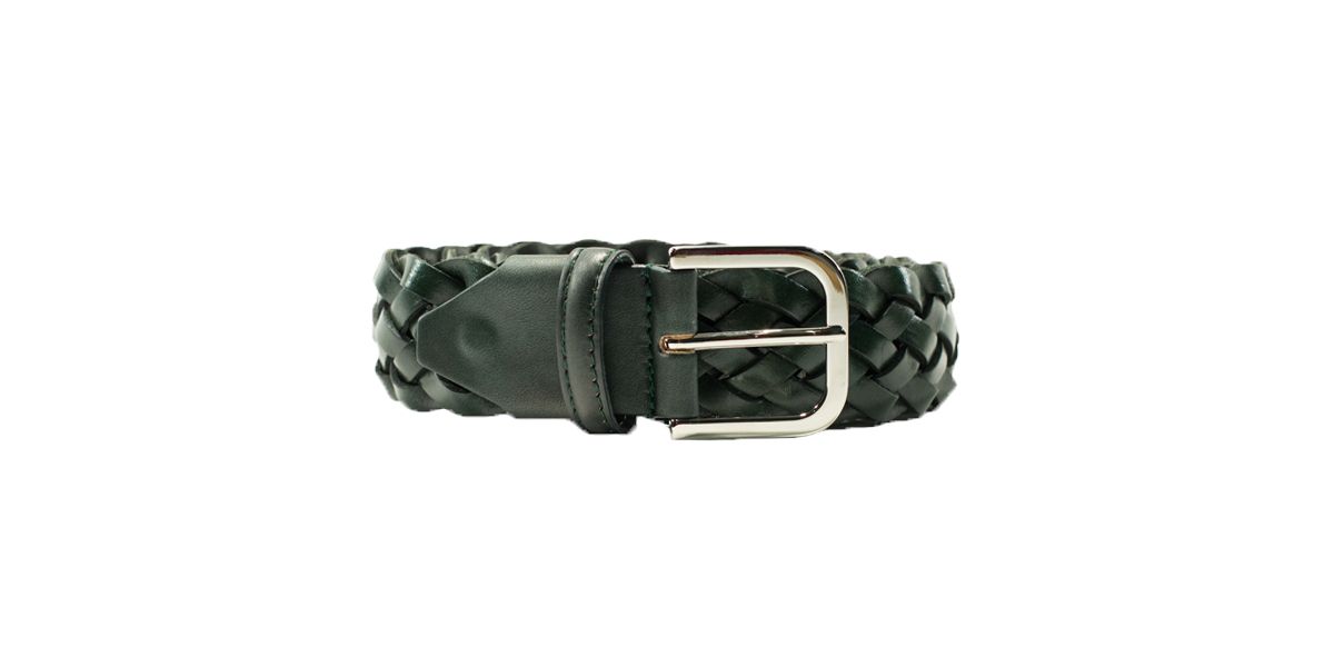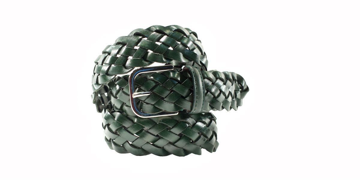 Cintura intrecciata esclusiva di Cardinale. Realizzata in vitello pieno fiore colore verde con fibbia stondata colore argento. Colore cintura: verde. Fodera: beige. Altezza: 4,1cm. Cintura realizzata con gli stessi pellami delle scarpe. Ideale sia per lavorare che per il tempo libero libero.