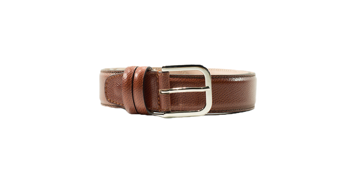 Cintura esclusiva di Cardinale interamente cucita. Realizzata in vitello martellato pieno fiore color cuoio inglese con fibbia stondata colore argento. Colore cintura: cuoio inglese. Fodera: beige. Altezza: 33 mm. Cintura realizzata con gli stessi pellami delle scarpe. Ideale sia per lavorare che per il tempo libero libero.