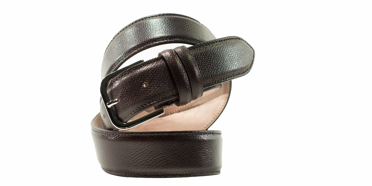 | A belt sewn by machine with handmade finishing. A work of craftsmanship entirely made in Italy. |