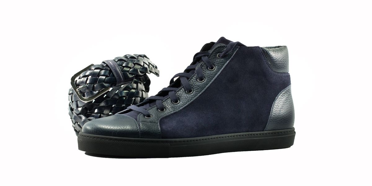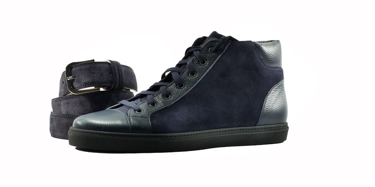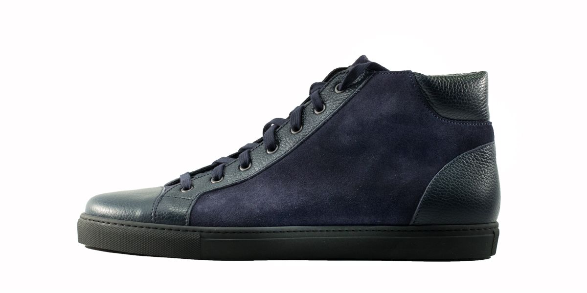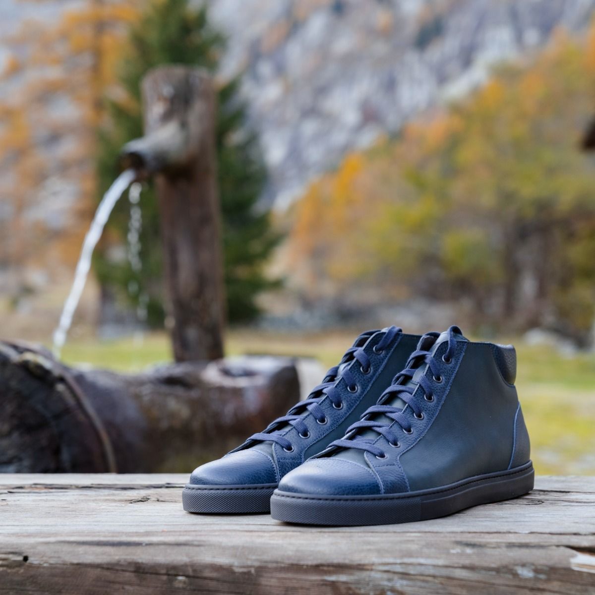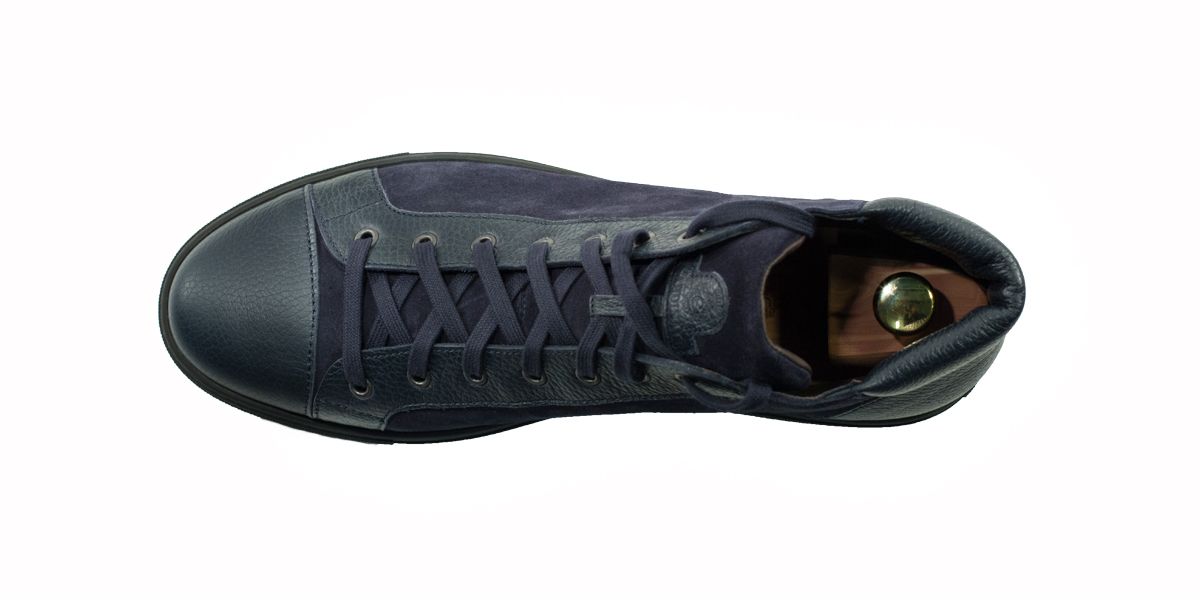Cardinale's Exclusive sneakers Collection. Material: grained calfskin and crust. Colour: blue. Outsole: black rubber. Use: leisure time. These casual yet elegant sneakers are perfect with a pair of jeans for an elegant casual look. Dress them up with a suit for a business casual style. Available in a large range of colours and materials. Made in Italy from premium materials, these sneakers are very comfortable and finished with elegant details.