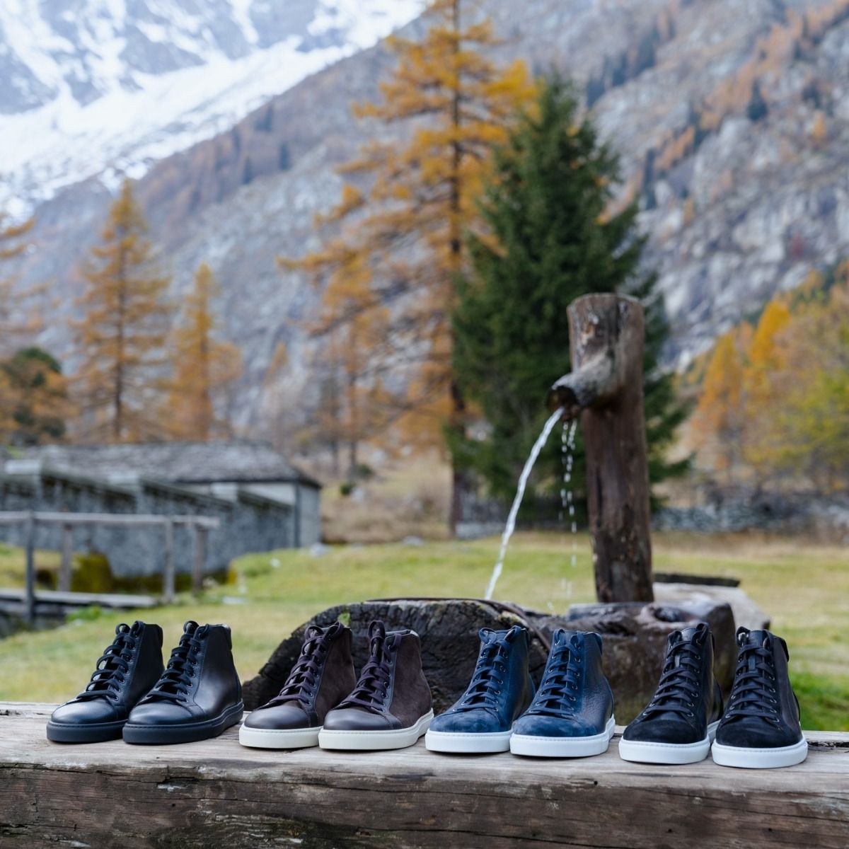 | After gluing the rubber box sole and pressing it to the upper shoe and midsole, it is further fastened using the Blake machine, which stitches the bottom of the shoe. The shoe manufacturing process consists of more than 35 handmade steps which include cutting, skiving, assembling, gluing, finishing, etc. The collection is entirely made in Italy. |