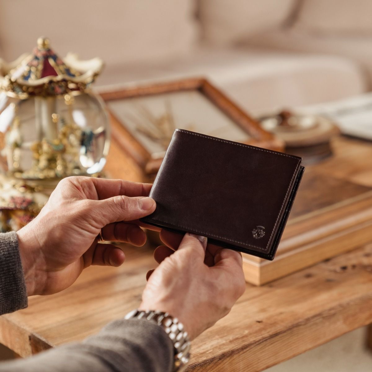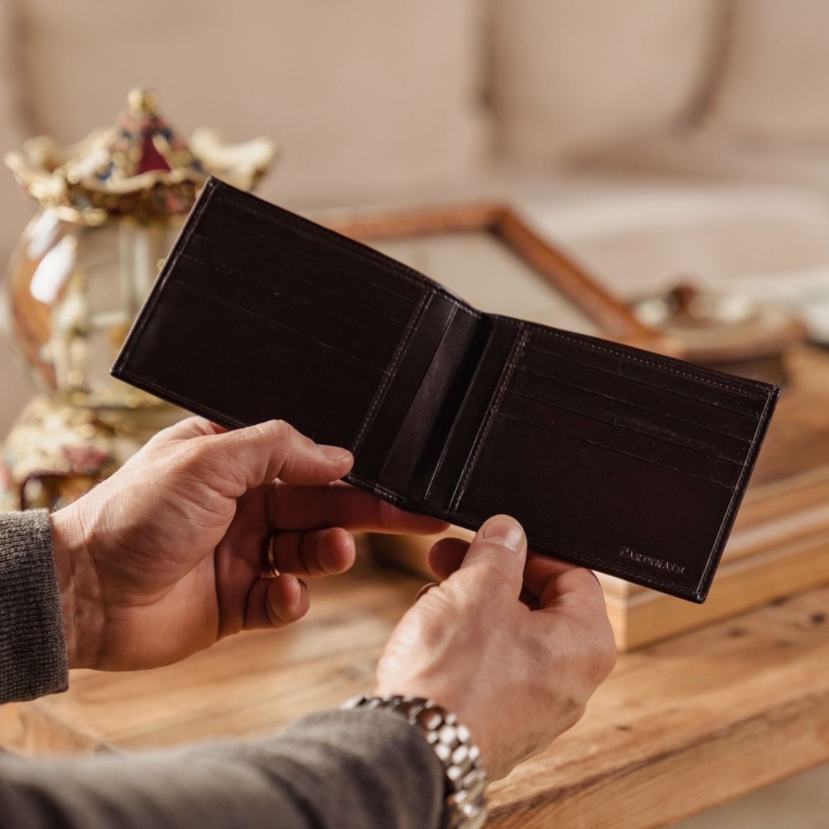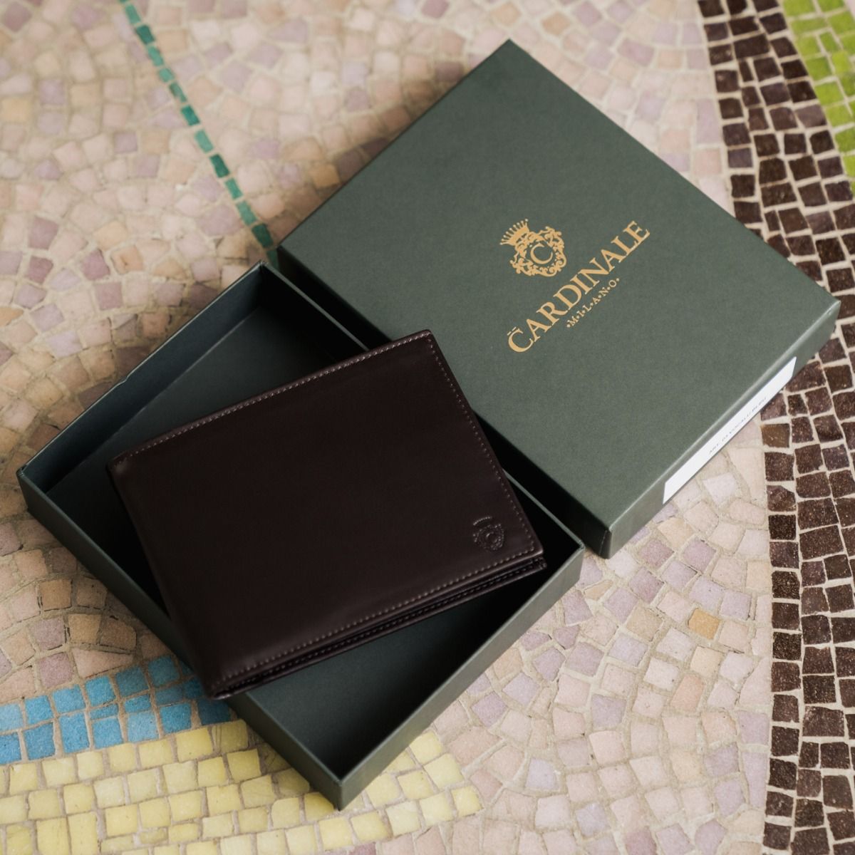 As part of the Cardinale Exclusive Royal collection, this wallet offers 6 card slots, 2 full-length note compartments, 1 badge slot, 4 extra pockets and coin holder. Material: full grain calfskin. Colour: dark brown. Dimensions: 12,5x 9,5. Made in Italy. It is made of the same leather used for our shoes. A great classic men's wallet that effectively house all your cards and cash.