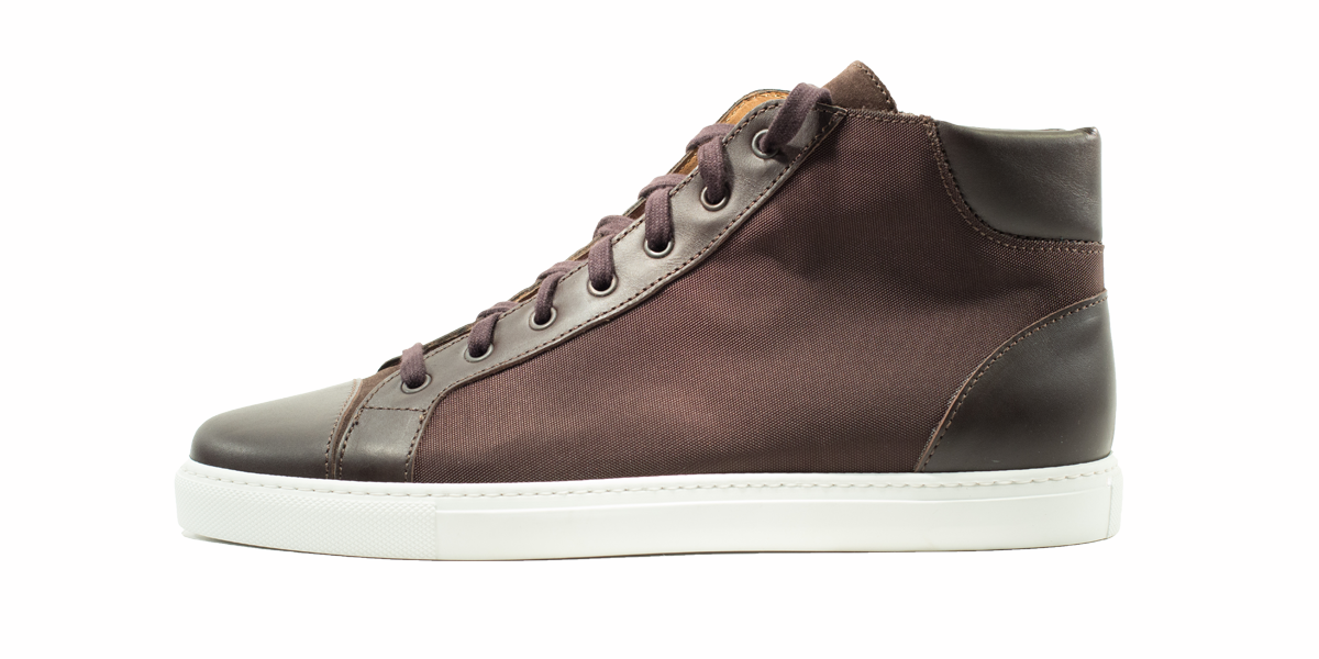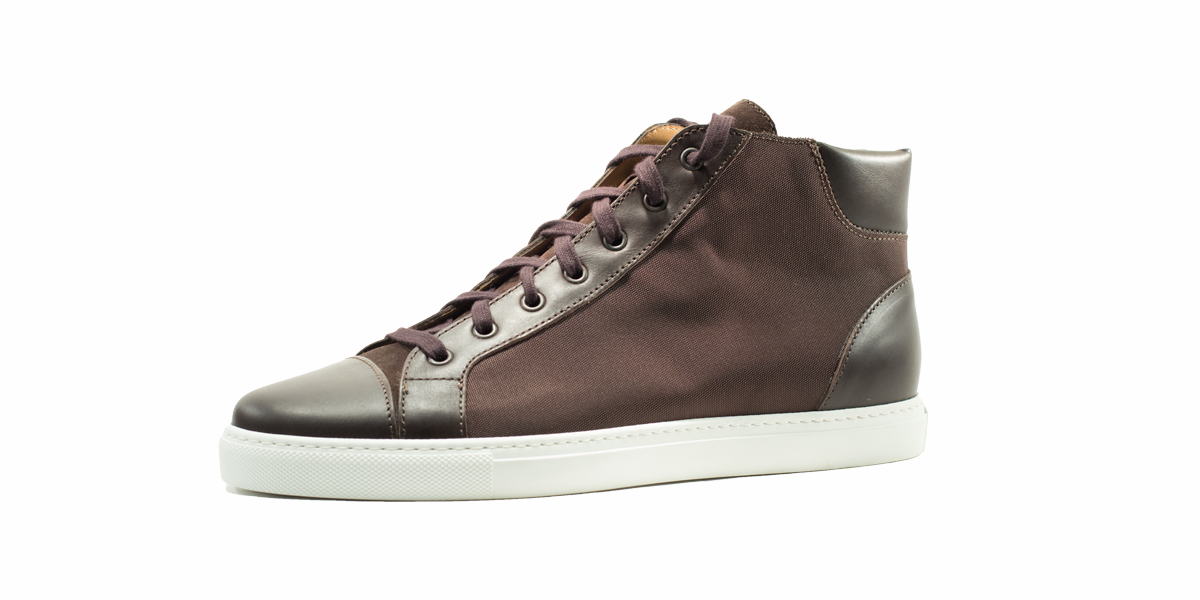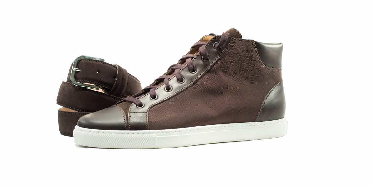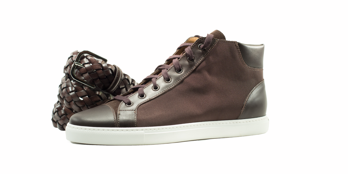 Sneakers esclusiva di Cardinale in tela testa marrone con inserti in pelle testa di moro. Pellame: tela e vitello pieno fiore. Colore: testa di moro. Fondo: gomma avorio. Utilizzo: tempo libero. Peso: primaverile-estiva. La collezione nuova delle sneakers di Cardinale vuole soddisfare un cliente che ama essere sportivo ma al tempo stesso formale. Questa collezione, infatti, può essere abbinata ad un semplice jeans ed una giacca, così come ad uno spezzato il venerdì, ormai chiamato casual-friday. E' incredibilmente confortevole ed è proposta in numerosissime varianti di colori, pellami e fondi. Curatissima nei dettagli e nelle scelte dei materiali utilizzati, con una produzione esclusivamente made in Italy. Un grande classico della collezione di Cardinale.