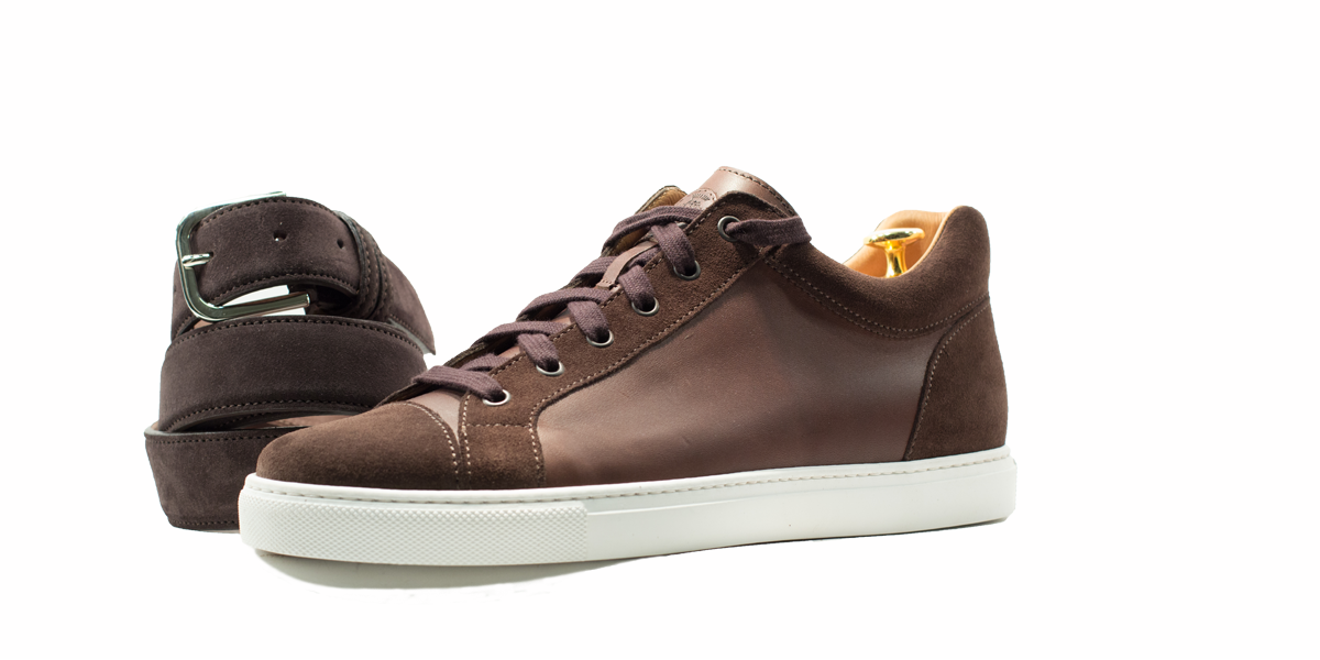 Sneakers esclusiva di Cardinale in camoscio con inserti in pelle. Pellame: crosta e Vitello pieno fiore. Colore: testa di moro. Fondo: gomma avorio. Utilizzo: tempo libero. La collezione nuova di sneakers di Cardinale vuole soddisfare un cliente che ama essere sportivo ma al tempo ad tesso formale. Questa collezione infatti può essere abbinata ad un jeans così come uno spezzato il venerdì, ormai chiamato casual-friday. E' incredibilmente confortevole e ed proposta in numerosissime varianti di colori, pellami e fondi. Curatissima nei dettagli e nelle scelte dei materiali utilizzati, con una produzione esclusivamente made in Italy.