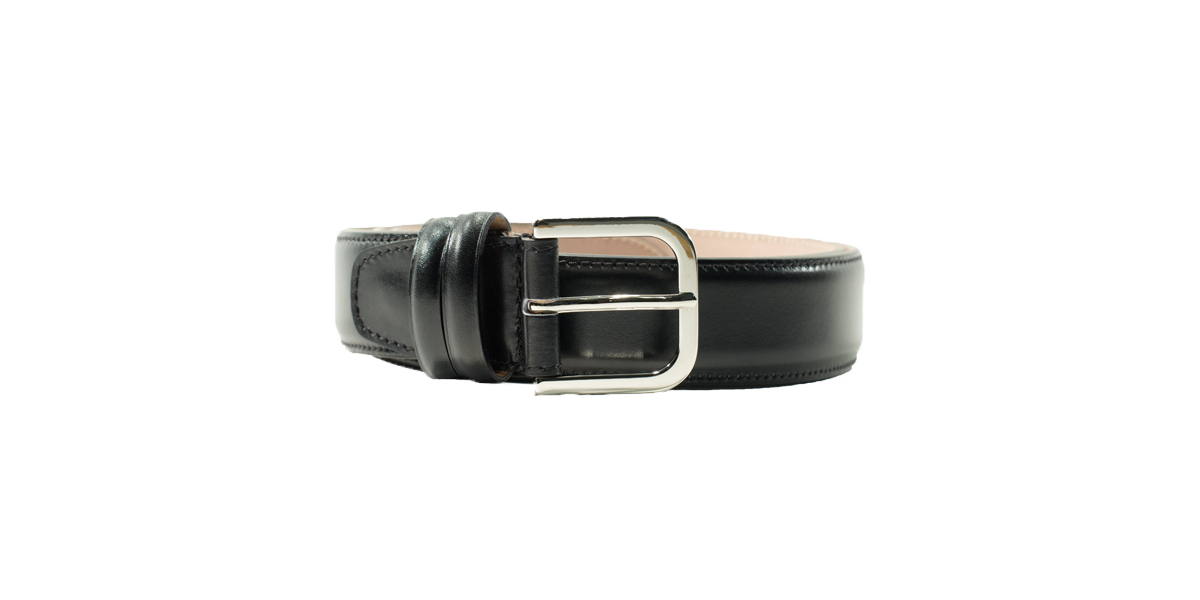 Cintura esclusiva di cardinale interamente cucita. Realizzata in vitello pieno fiore color nero con fibbia stondata colore argento. Colore cintura: nero. Fodera: beige. Altezza: 33 mm. Cintura realizzata con gli stessi pellami delle scarpe. Ideale per lavorare, per le cerimonie e per il tempo libero libero.