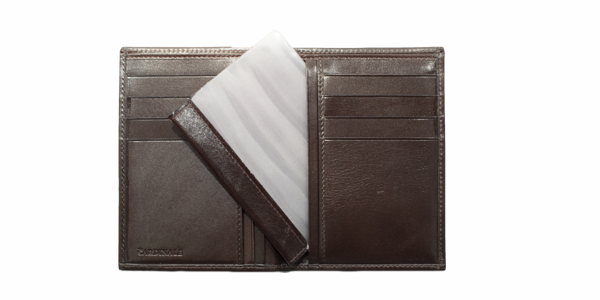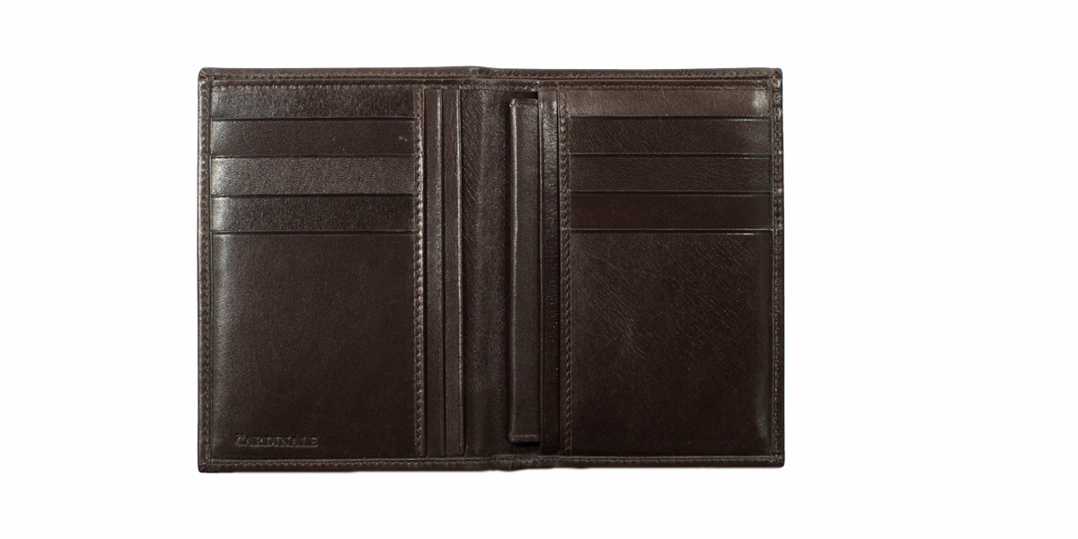 Portafogli esclusivo di Cardinale collezione Paris. Composto da 8 vani porta carte, 1 scomparto banconote, 5 tasche extra,1 scomparto porta documenti cartaceo. Pellame: vitello pieno fiore. Colore: testa di moro. Dimensioni: 9 x 12,8. Realizzato in Italia. Per la pelletteria utilizziamo gli stessi pellami delle nostre scarpe. Un portafogli ben organizzato, ideale per chi utilizza documenti cartacei, carte di credito e tessere varie. Un grande classico della collezione di Cardinale.